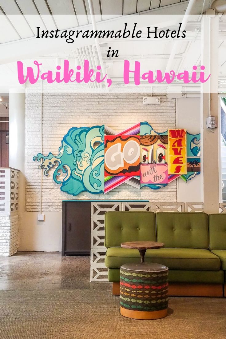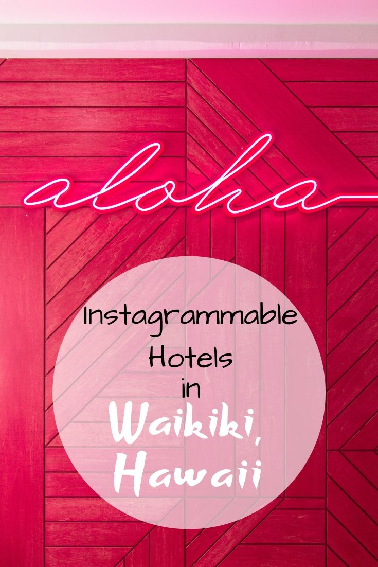 Color is king at Shoreline. The colors especially pop against a mostly white space, with accents of yellow, blue, red, pink and everything in between. There is a rooftop pool with amazing views of Waikiki, complete with a huge colorful mural! You pretty much have to take photos there. Even the staircase leading up to the pool is colorful! The rooms are cute, too, each with a private balcony and a big map of Hawaii over the bed. They even give you a complimentary basket of local snacks to enjoy! You will hardly even need to leave the hotel to get all the Insta snaps that you need. Of course the beach is only a few blocks away, and that’s hard to resist.